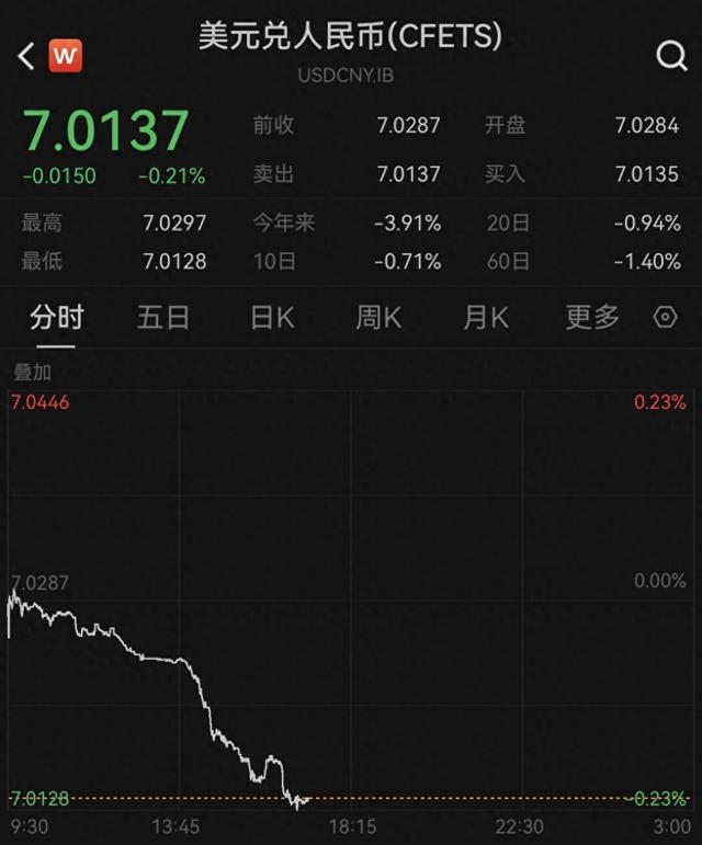 12月24日,人民币对美元即期汇率16:30收盘报7.0161,较上一交易日上涨126个基点。进入夜盘交易时间后本财配资,人民币对美元即期汇率进一步走强,截至发稿,盘中最高升至7.0128,续创去年10月以来的新高。